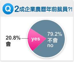相對於基層員工苦哈哈,企業這邊有二成(22.3%)在經營虧損的狀態下,會執行全面減薪,面對政府壓制無薪假,七成(67.7%)企業不領情,一切依公司原訂政策執行,基本上是採三「步」曲:第一步,二成(22.3%)受調查企業在經營虧損的狀態下,會執行全面減薪。第二步,如果減薪仍無法轉虧為盈的話,近五成(45.4%)企業會實施無薪假。第三步,倘若景氣在持續下探,兩成(20.8%)企業表示,不排除在農曆年前引爆裁員危機。